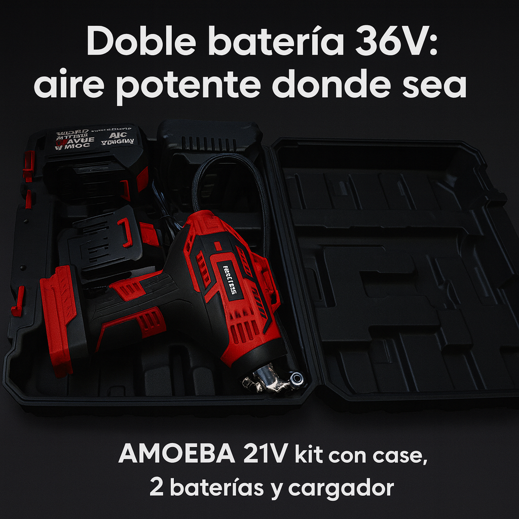 Diseño portátil: compacto y sin cables, doble batería 36 V (según versión), carga rápida y maletín para carro, taller o casa.