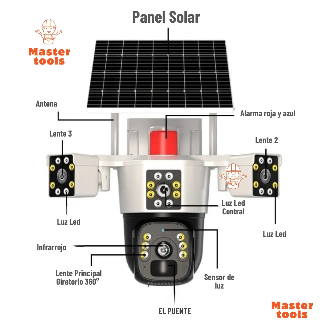 1 Cámara de seguridad solar 3 lentes
