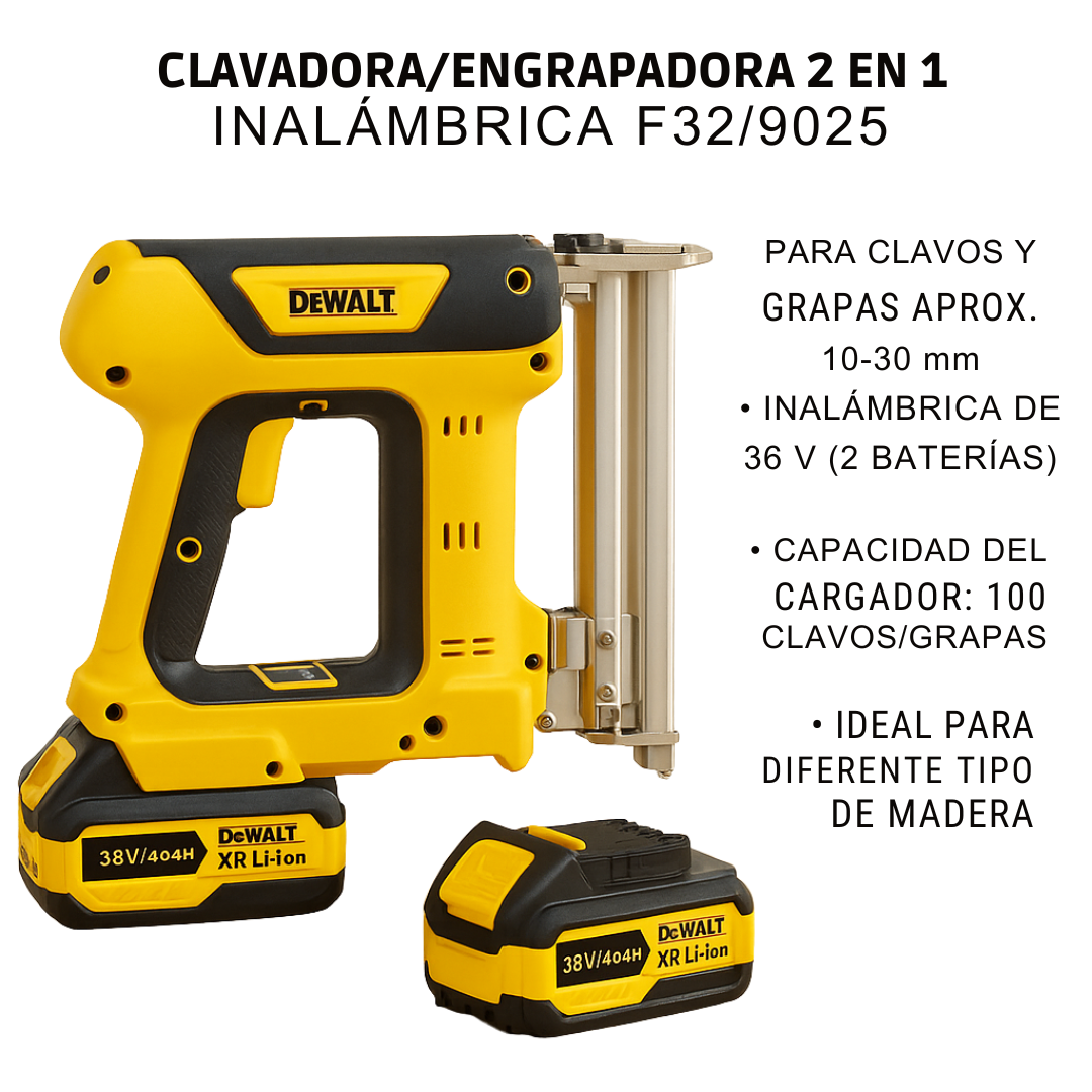 Especificaciones Técnicas – Clavadora/Engrapadora Inalámbrica 2 en 1 36V (F32/9025)